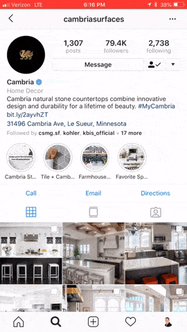 Creating content for Instagram isn’t hard, it’s barely even time consuming. Considering the fact that you can snap, upload, and go – there’s no excuses. At minimum you should be optimizing your Instagram bio for your keywords and hashtags. If you want to master Instagram for your remodeling business, try working on each of the other three areas week by week. Get into a regular rhythm of posting content daily. Next, work on your stories content. Finally, dive into IGTV and explore the possibilities.
